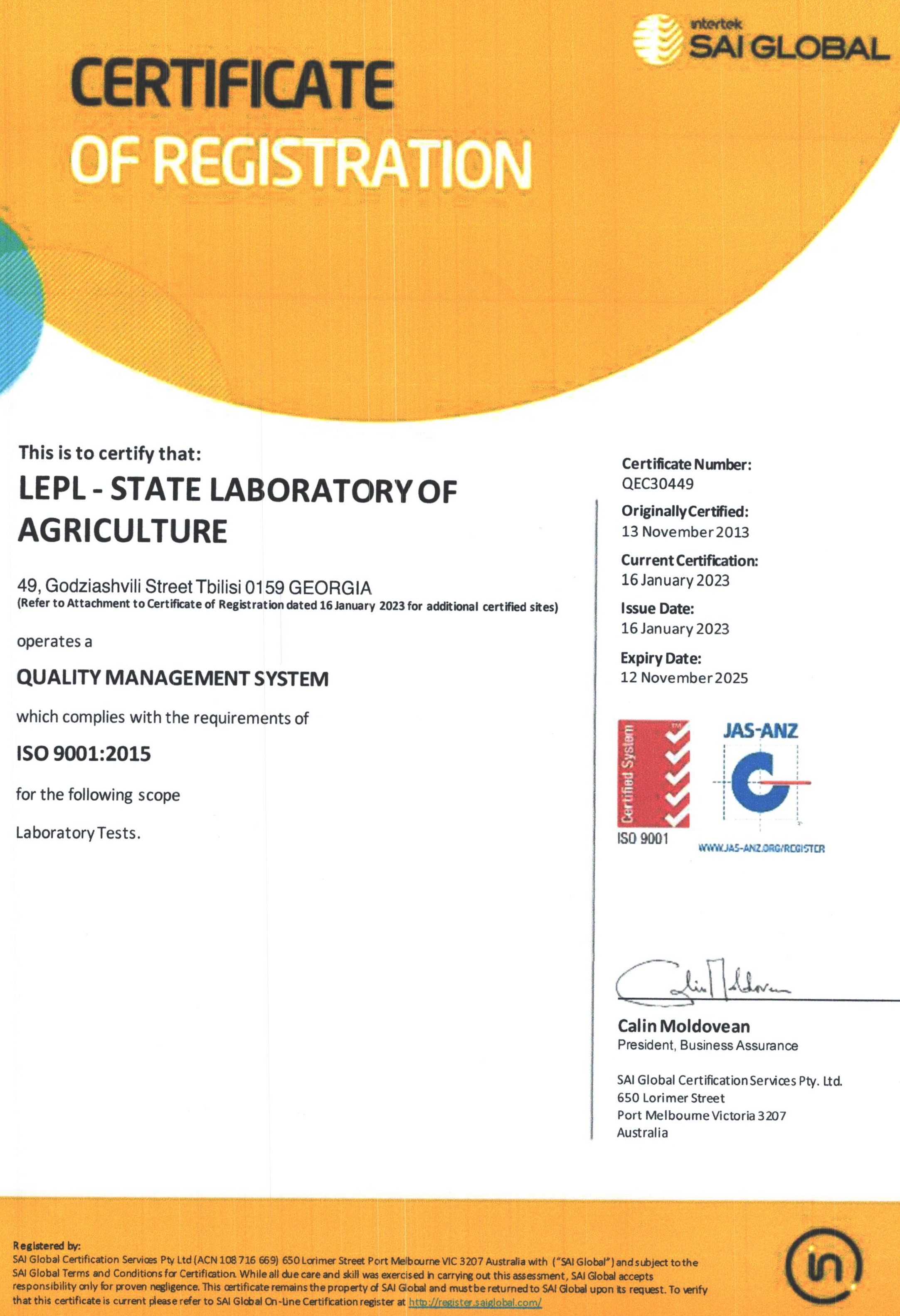 ხარისხის მართვის სერტიფიკატი ISO 9001:2015