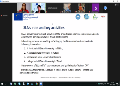 ევროკავშირის მიერ მხარდაჭერილი პროექტის „ლაბორატორიული ჯანმრთელობისა და უსაფრთხოების უწყვეტი განათლების კურსები ახალგაზრდა პროფესიონალებისთვის დასავლეთ და აღმოსავლეთ საქართველოში“ გახსნის ღონისძიება ონლაინ რეჟიმში გაიმართა. ღონისძიებას სხვადასხვა ორგანიზაციის 50-მდე წარმომადგენელი ესწრებოდა,